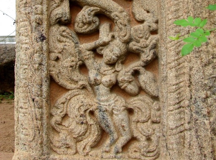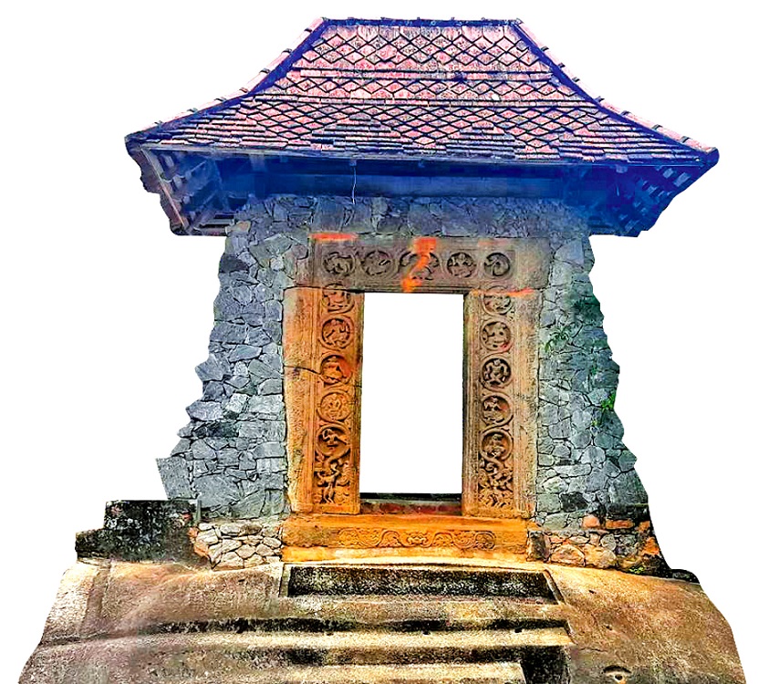 විහාරයට පිවිසෙන කළුගල් පඩිපෙළ අසල අද පිහිටුවා ඇති අගනා කැටයම් සහිත ගල් උළුවස්ස කලකට පෙර වෙනත් ස්ථානයක නටබුන් ව තිබූ හින්දු දේවාලයකින් ගෙනෙන ලද්දක් විය හැකි බවයි මහාචාර්ය පරණවිතාන පවසන්නේ. ආචාර්ය චාල්ස් ගොඩකුඹුර සඳහන් කරන්නේ මෙය 14 වැනි සියවසට ( දඹදෙණි යුගයට) අයත් කලා නිර්මාණයක් බව යි. මෙහි විශේෂත්වය නම් අර්ධෝන්නත අයුරින් කැටයම් මතු කර දැක්වීම යි. ඉතා සියුම් ලෙස ගලෙන් මතුකර ඇති මේ කැටයම්වල මෘදංග බෙර වයන්නන්, නළඟනන්, ස්ත්රීන්, නාටිකාංගනාවන්, මල්වැල් දැකගත හැකි යි.
