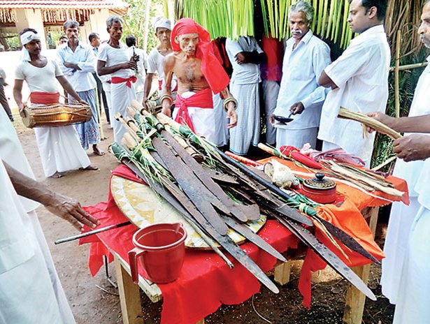 ‘යක්කම’’ පවත්වන්නට පෙර ගම්මුන් එකතු වී ගමේ දේවාලයේ යහන් තනා අලංකාර තොරණක් ද සවි කරනවා. පසුදා උදේ ඉරු නැඟෙන්නට පෙර දේවාලයේ තැන්පත් කර ඇති ඉපැරණි යකඩ ආයුධ, කැති, කඩු, කිණිසි හා තවත් එවැනි ආයුධ මිටියක් ලබාගෙන එම ආයුධ පෙරහරකින් ගොස් පිරිසුදු ජල පහරකින් සෝදනවා. ඒවායේ මුල පුවක් මල් බැඳ පෙරහරකින් දේවාල භූමියට නැවත රැගෙන එනවා.